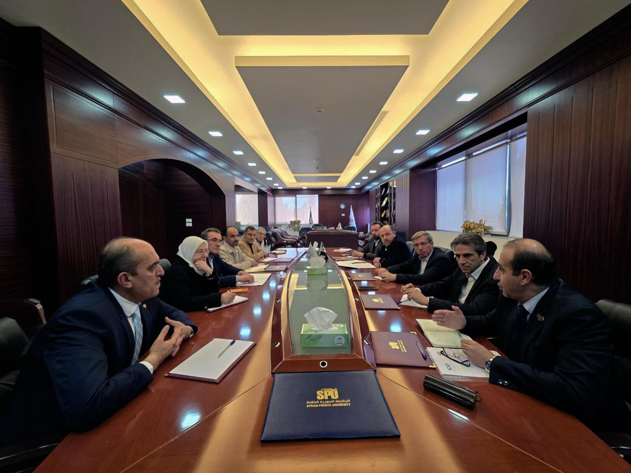 <span lang="AR-SA" style="font-family:"Arial",sans-serif;mso-ascii-font-family:Calibri;mso-ascii-theme-font:minor-latin;mso-hansi-font-family:Calibri;mso-hansi-theme-font:minor-latin">في إطار تنفيذ خطتها الوطنية لتعزيز ثقافةالجودة والاعتمادية في مؤسسات التعليم العالي، أجرى رئيس الهيئة الوطنية للجودةوالاعتمادية الدكتور عمر حمادة زيارة رسمية إلى الجامعة السورية الخاصة، يرافقهعضو مجلس المفوضين الدكتور بيان السيد، التقى خلالها رئيس الجامعة الدكتور عبدالرزاق الحسين ونائبته الدكتورة أروى الخيّر وأمين الجامعة الدكتور رياض الغزي وعمداء الكليات الطبية في الجامعة.