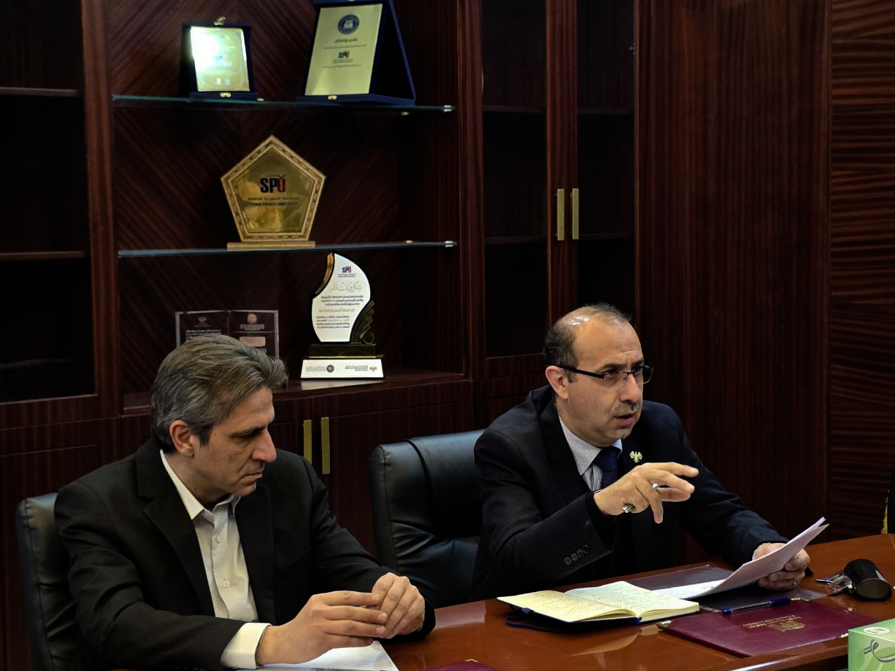 <span lang="AR-SA" style="font-family:"Arial",sans-serif;mso-ascii-font-family:Calibri;mso-ascii-theme-font:minor-latin;mso-hansi-font-family:Calibri;mso-hansi-theme-font:minor-latin">وفي ختام اللقاء، قدّم السيد رئيس الجامعةدرعًا تقديريًا للدكتور عمر حمادة، تعبيرًا عن الامتنان والتقدير للجهود المبذولةمن قبل الهيئة في تعزيز ثقافة الجودة والاعتمادية في التعليم العالي.