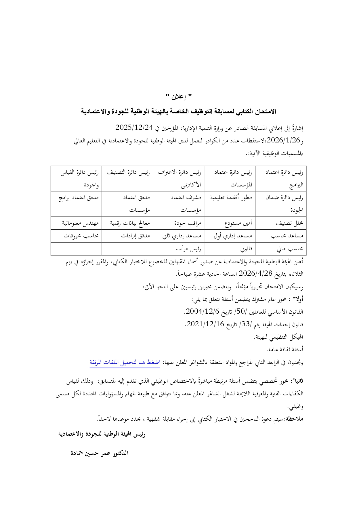 إعلان مسابقة الهيئة الوطنية للجودة والاعتمادية 2026
