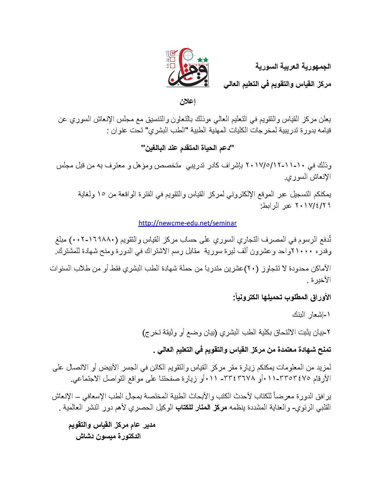 اعلان دورة دعم الحياة المتقدم عند البالغين
