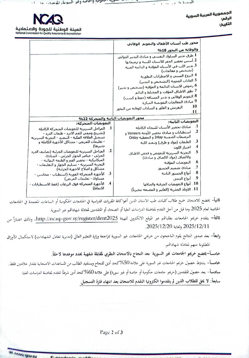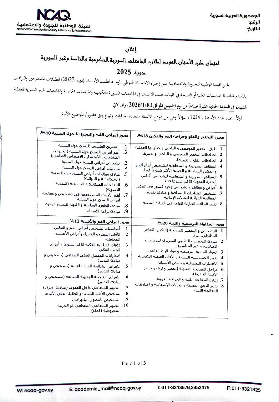 اعلان امتحان طب الأسنان الموحد-دورة 2025
