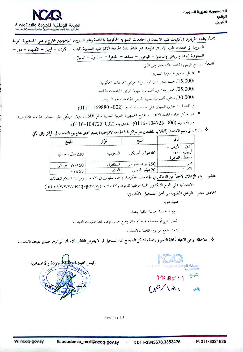 اماكن توزيع الطلاب المتقدمين لامتحان الطب البشري الدورة الثانية2025(طرطوس+حلب)