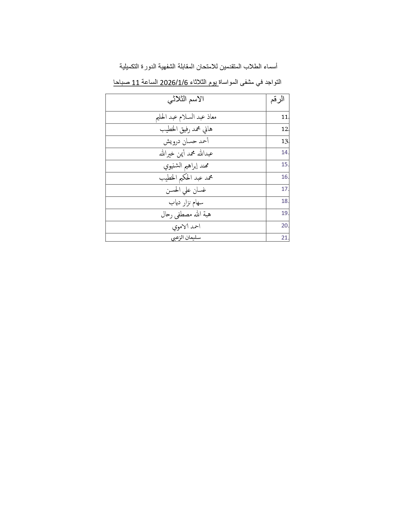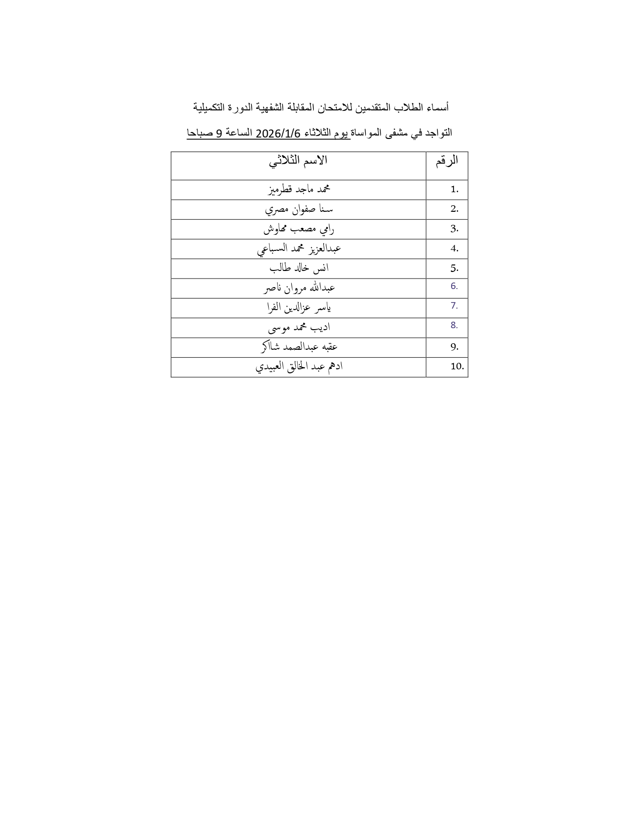 اسماء الطلاب المتقدمين الى امتحان المقابلة الشفهية الدورة التكميلية 2025